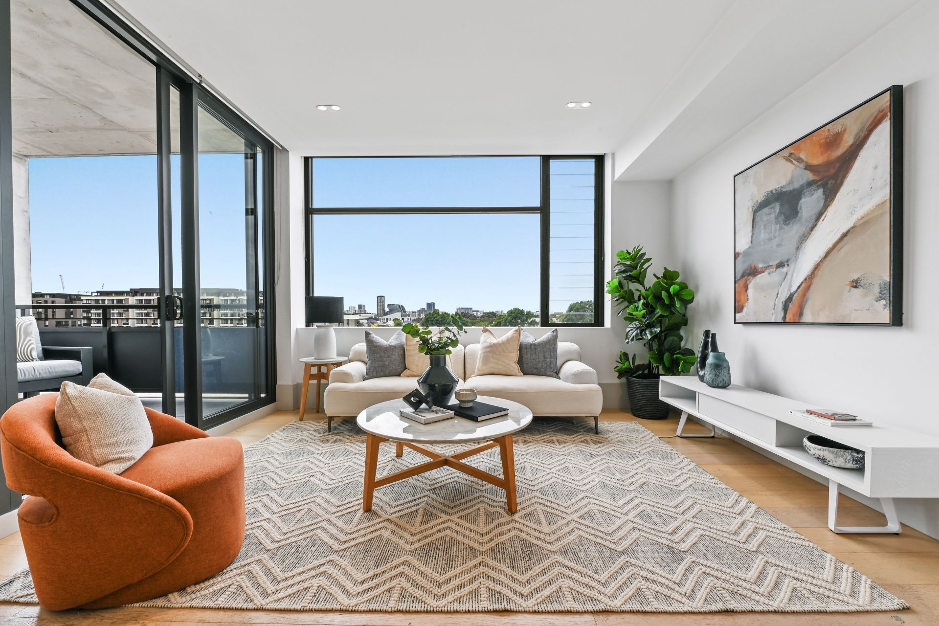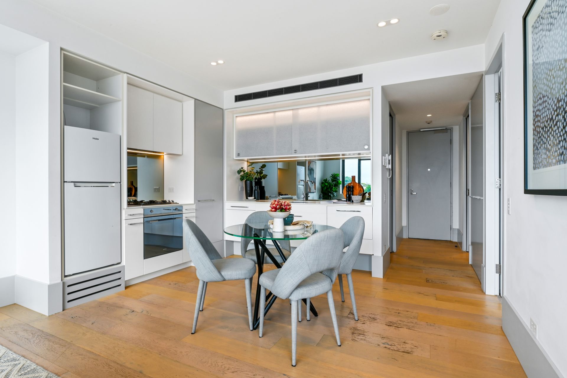 Featuring a versatile layout & sophisticated design w/ interiors by BKH, this one bedroom + second bedroom/study located in the tightly held “OneA” development is drenched in natural light & offers low maintenance living on the buzzing city fringe. With expansive windows & high ceilings, this cleverly designed home w/ ample storage, top-of-the-line appliances & a spacious open-plan living, creates the perfect space for relaxation & entertainment. This apartment is front row to a thriving village hub that’s growing in popularity, lifestyle offerings, and more – the perfect opportunity to secure a first home or investment property.
